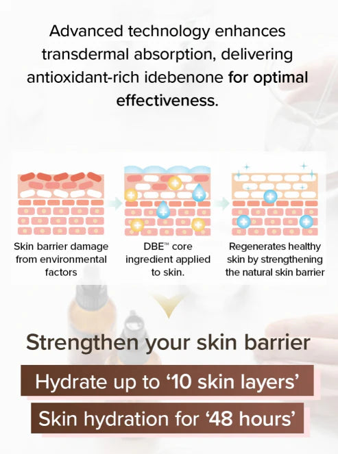 The Idebenone Blackberry Intense Cream is a rich, high-nutrition cream designed to offer powerful hydration and enhance skin elasticity through a unique skin barrier strengthening complex. It features a patented skin barrier strengthening complex, DBE™ (Derma Multi Barrier Emulsion), which reinforces the skin barrier and enhances the skin's own moisturizing function. Clinically proven, the cream improves hydration for 48 hours after one use, shows improvement in all ten indicators after five uses, and enhances the skin barrier after two weeks.